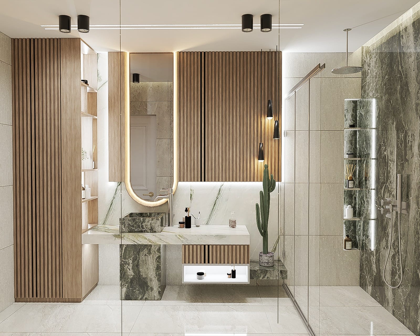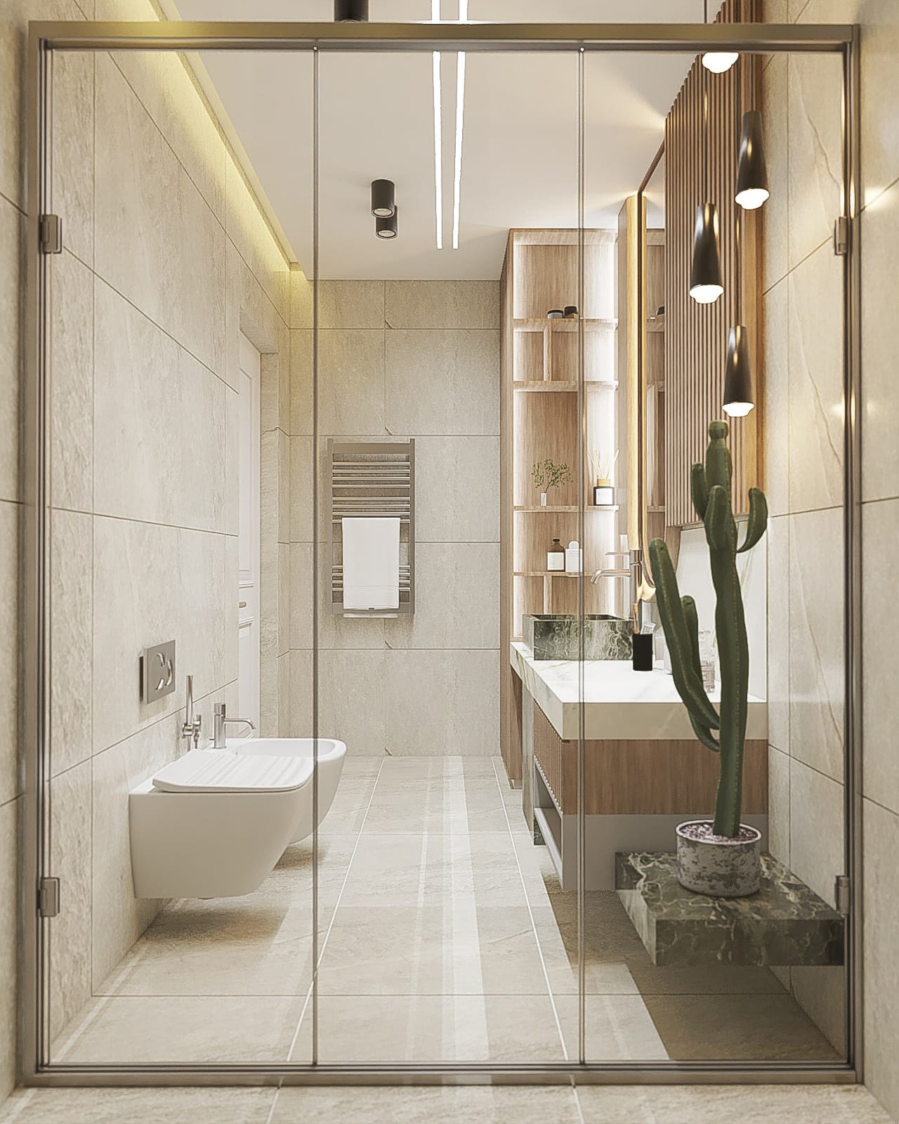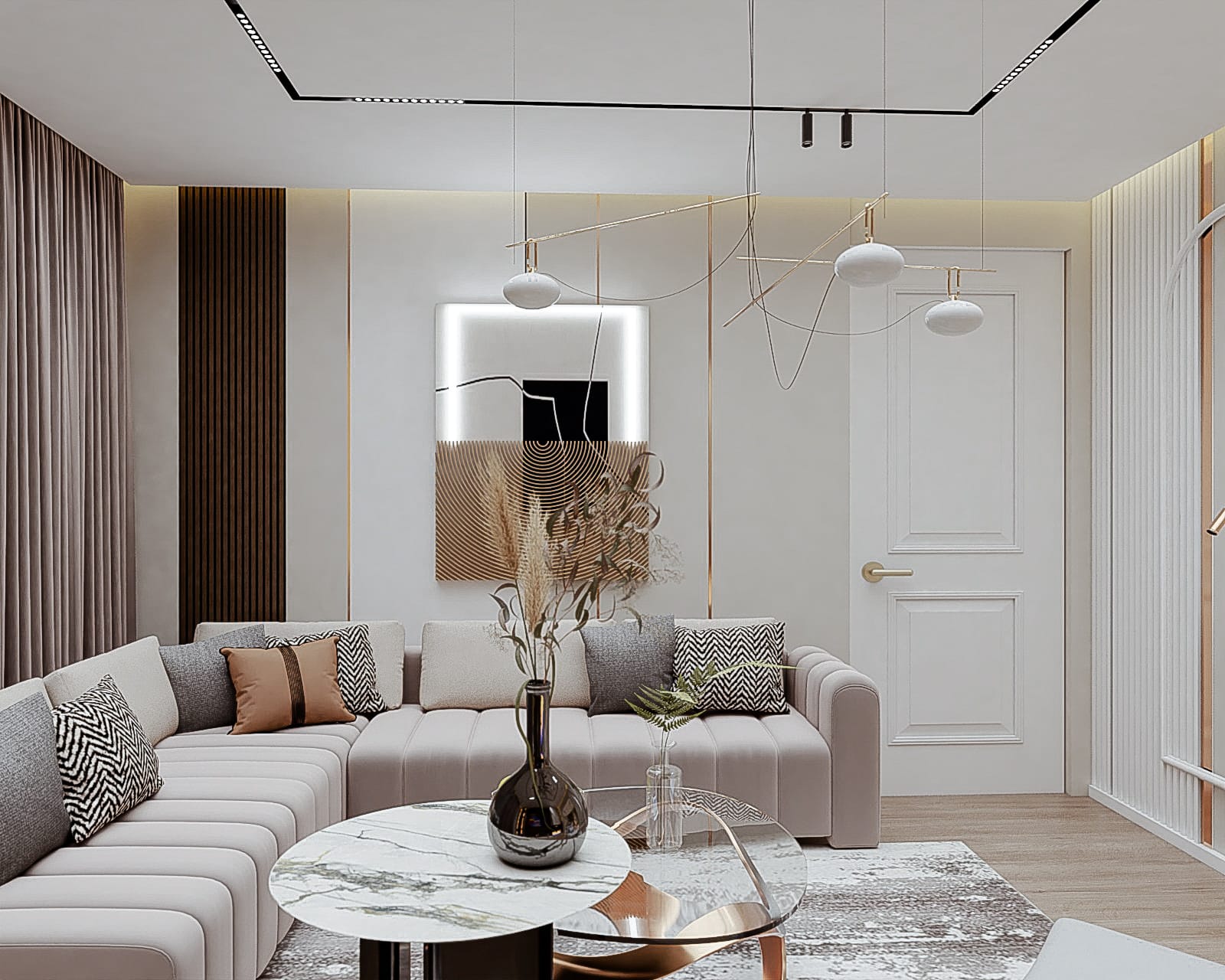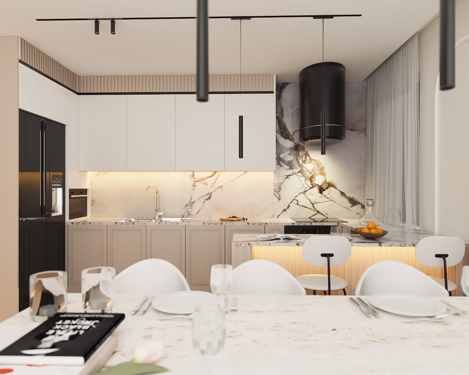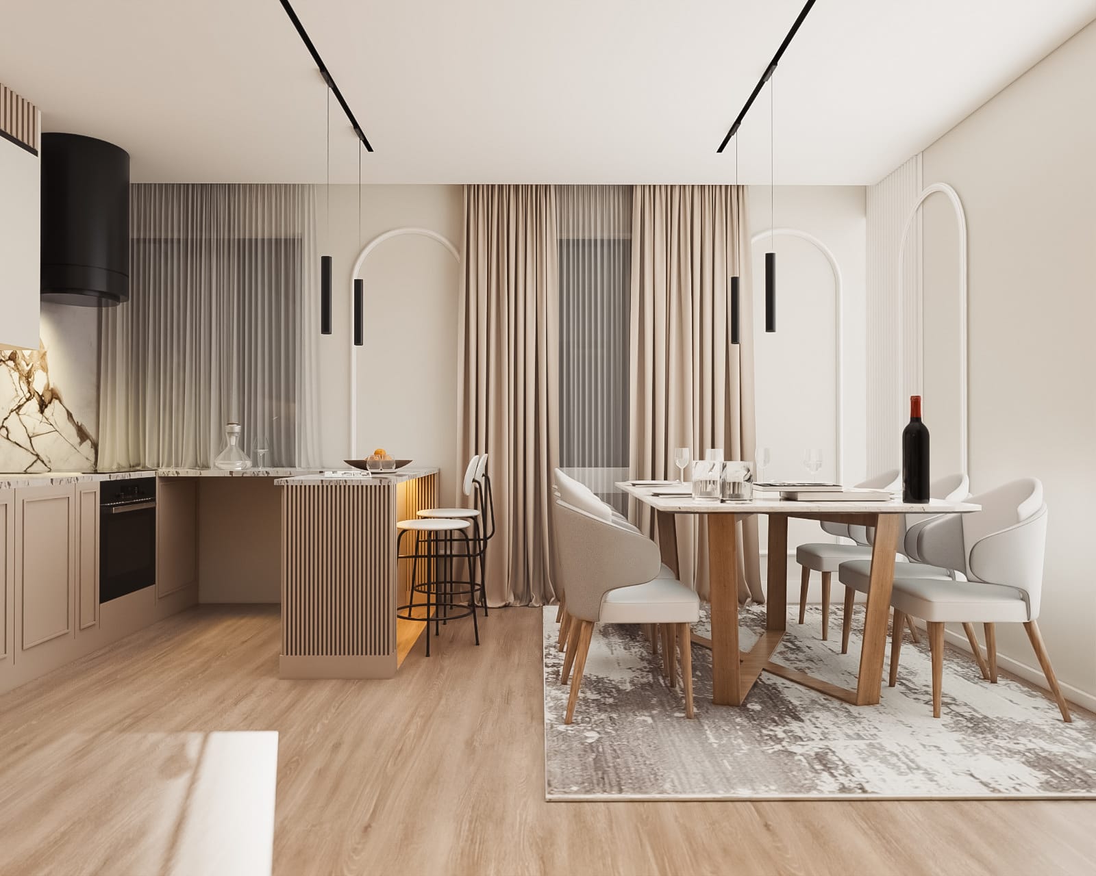 The concept embraces a minimalist aesthetic with refined modern elements. The interior is characterized by a cohesive use of calm, neutral tones and contemporary finishes, creating a sense of harmony and continuity throughout the space. A unified design language was applied to all areas, maintaining consistency in both color palette and materials.