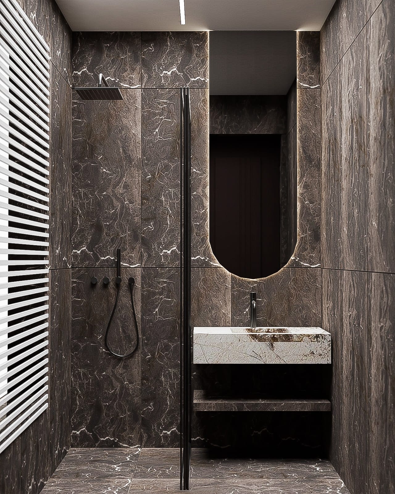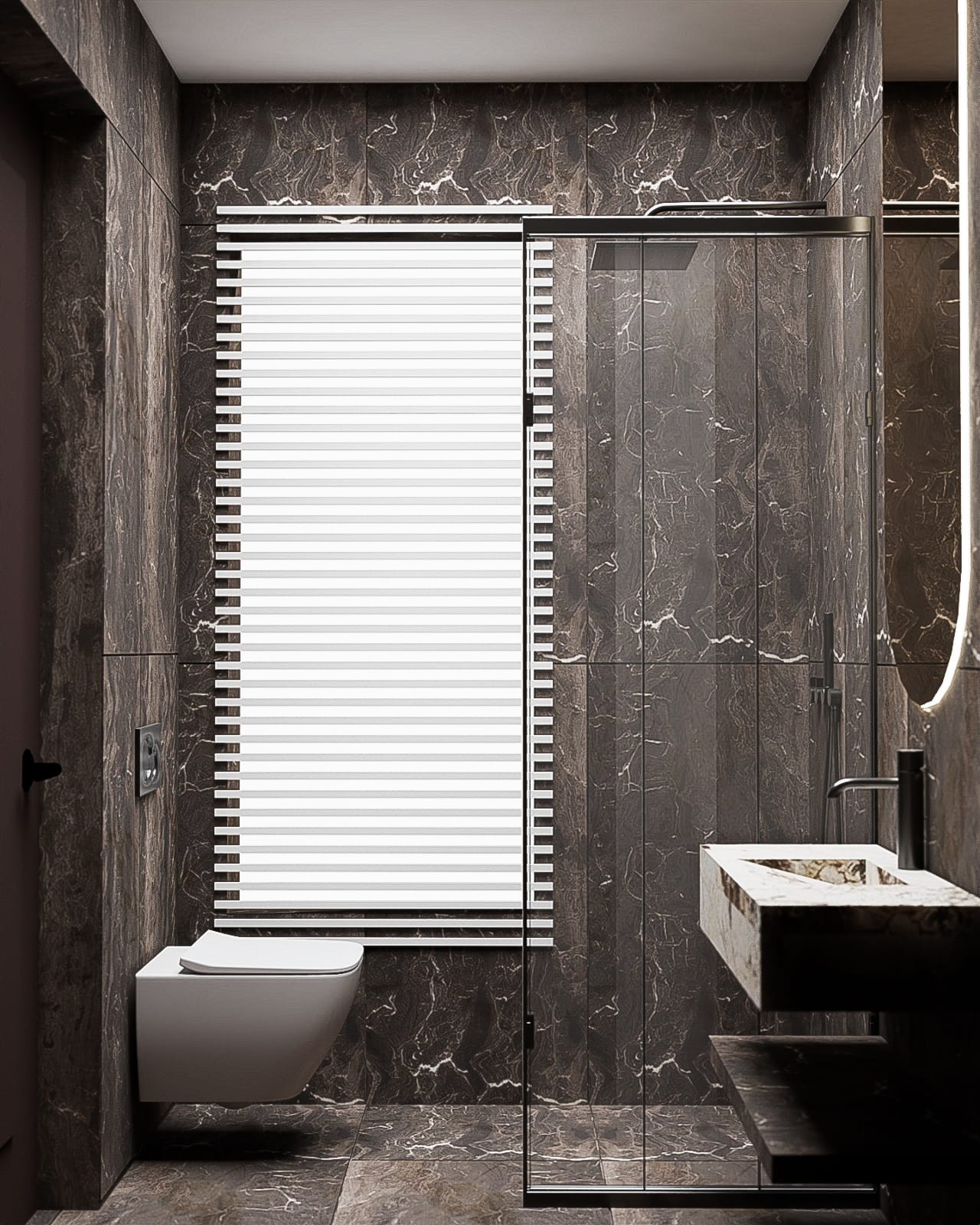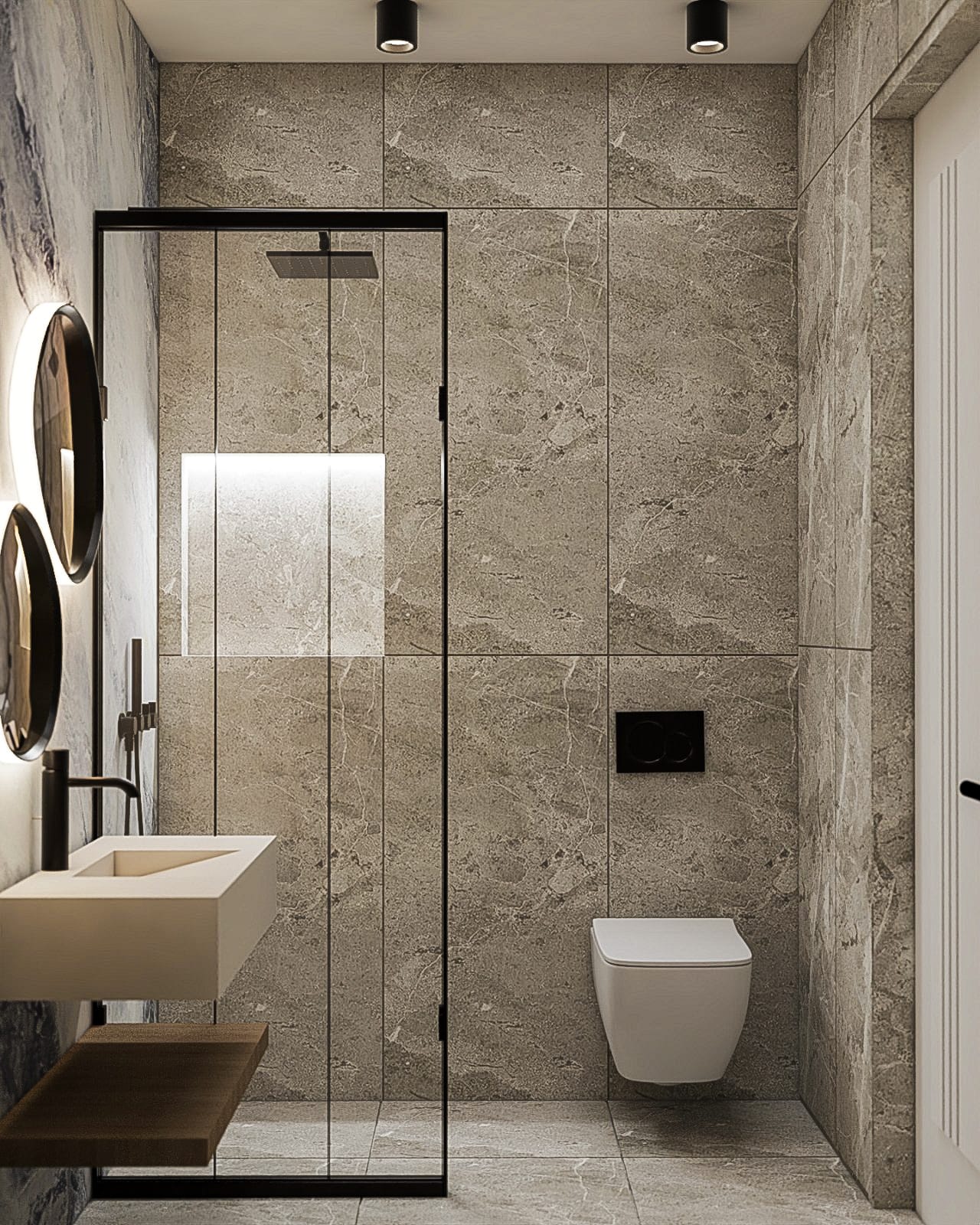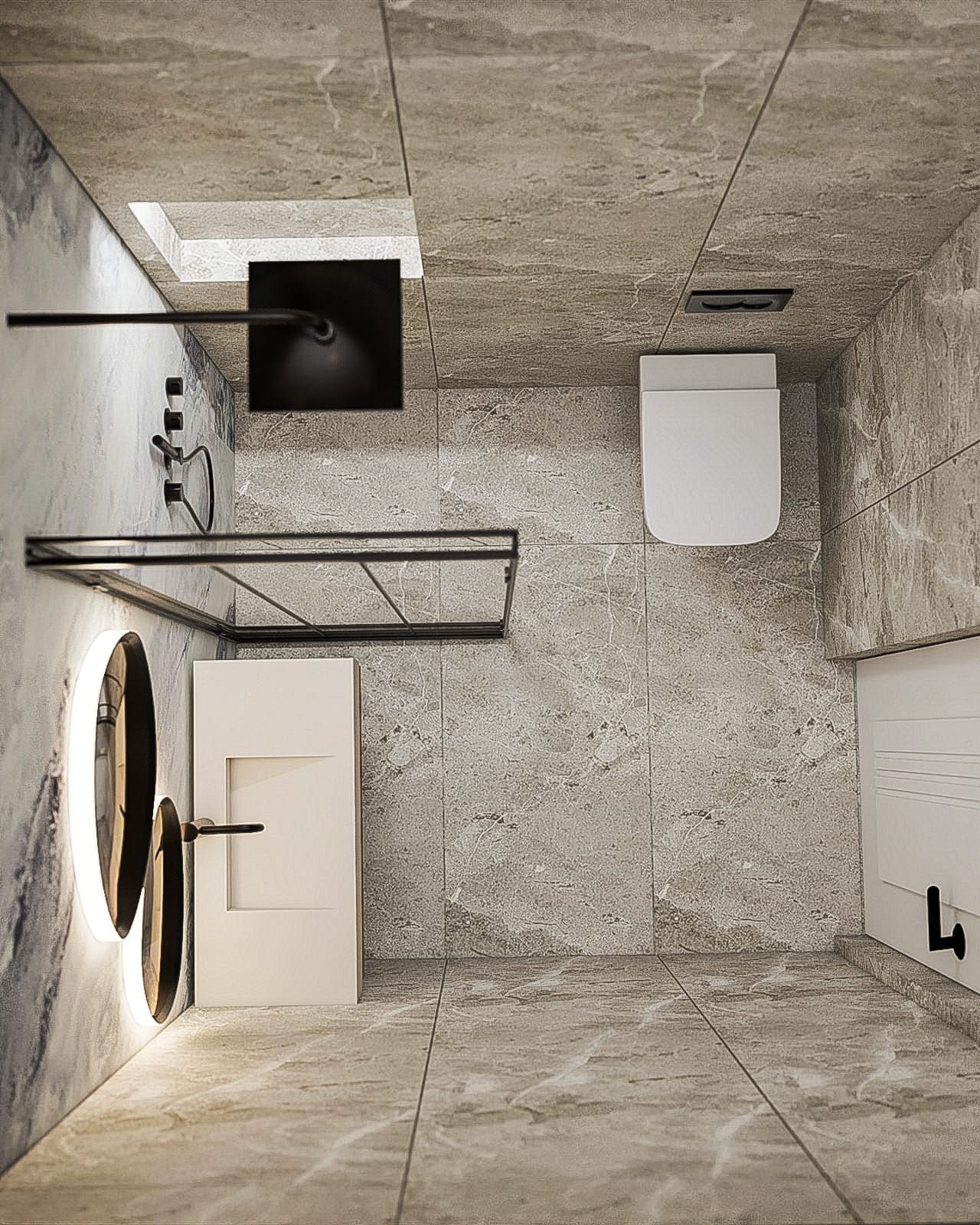 In this section, you will find interior design projects of various bathrooms, showcasing different architectural details. The design of each bathroom is based on the clients' specific requirements, preferences, and ideas.