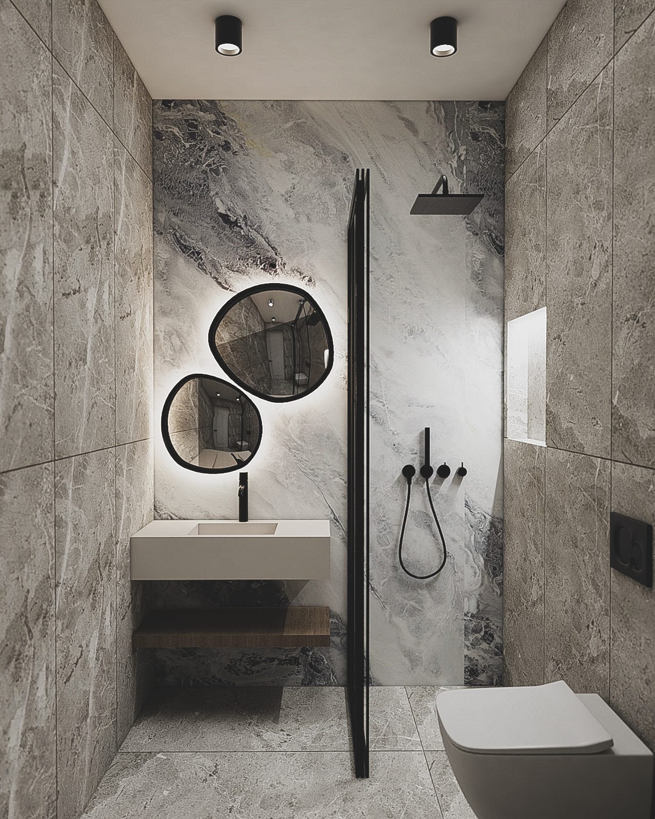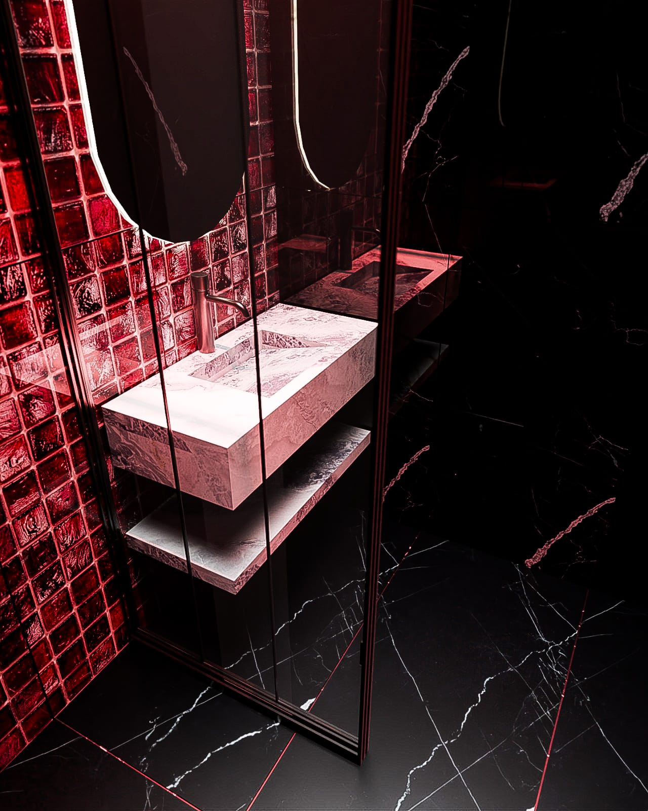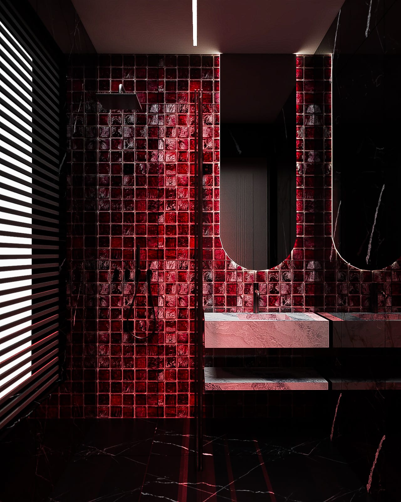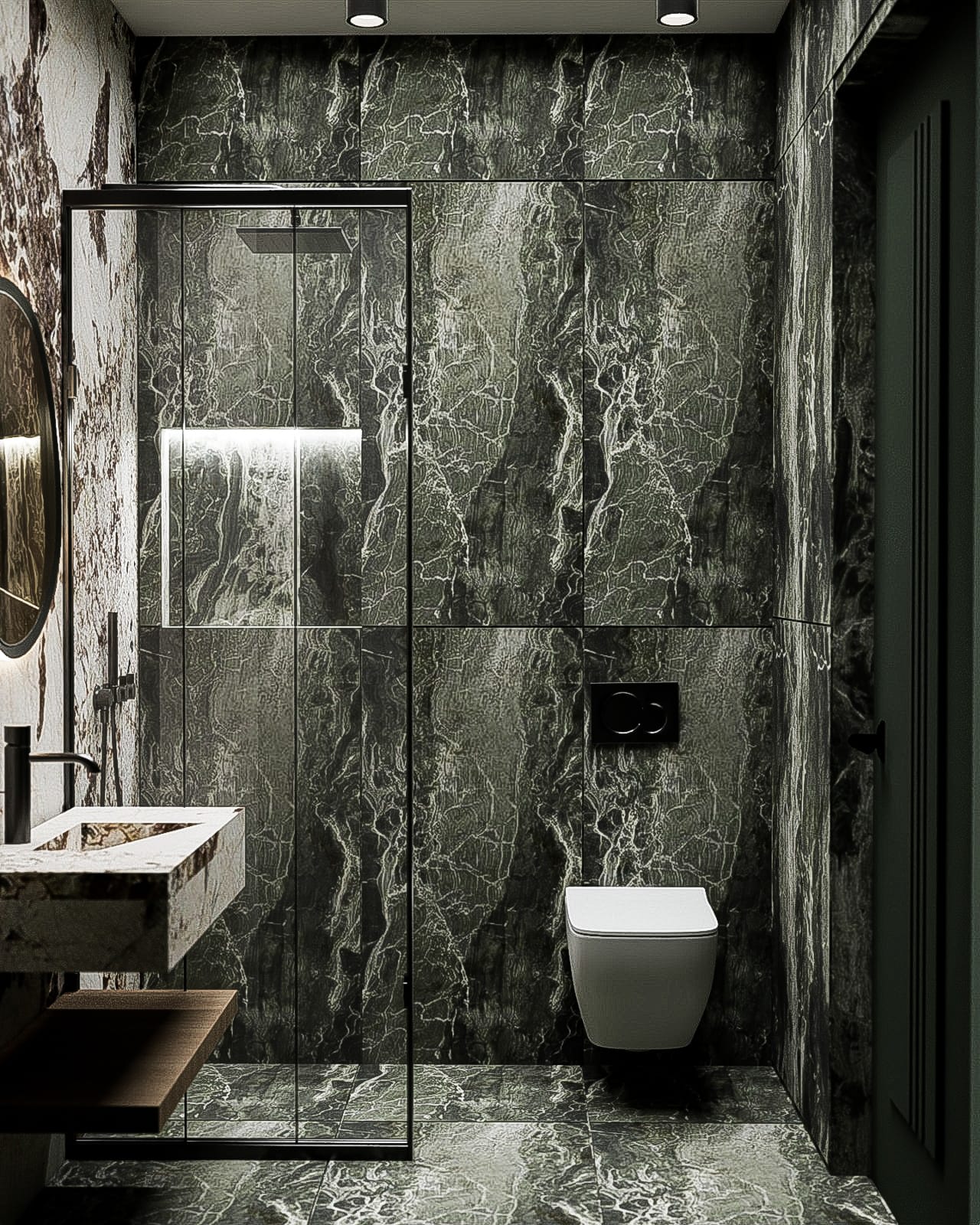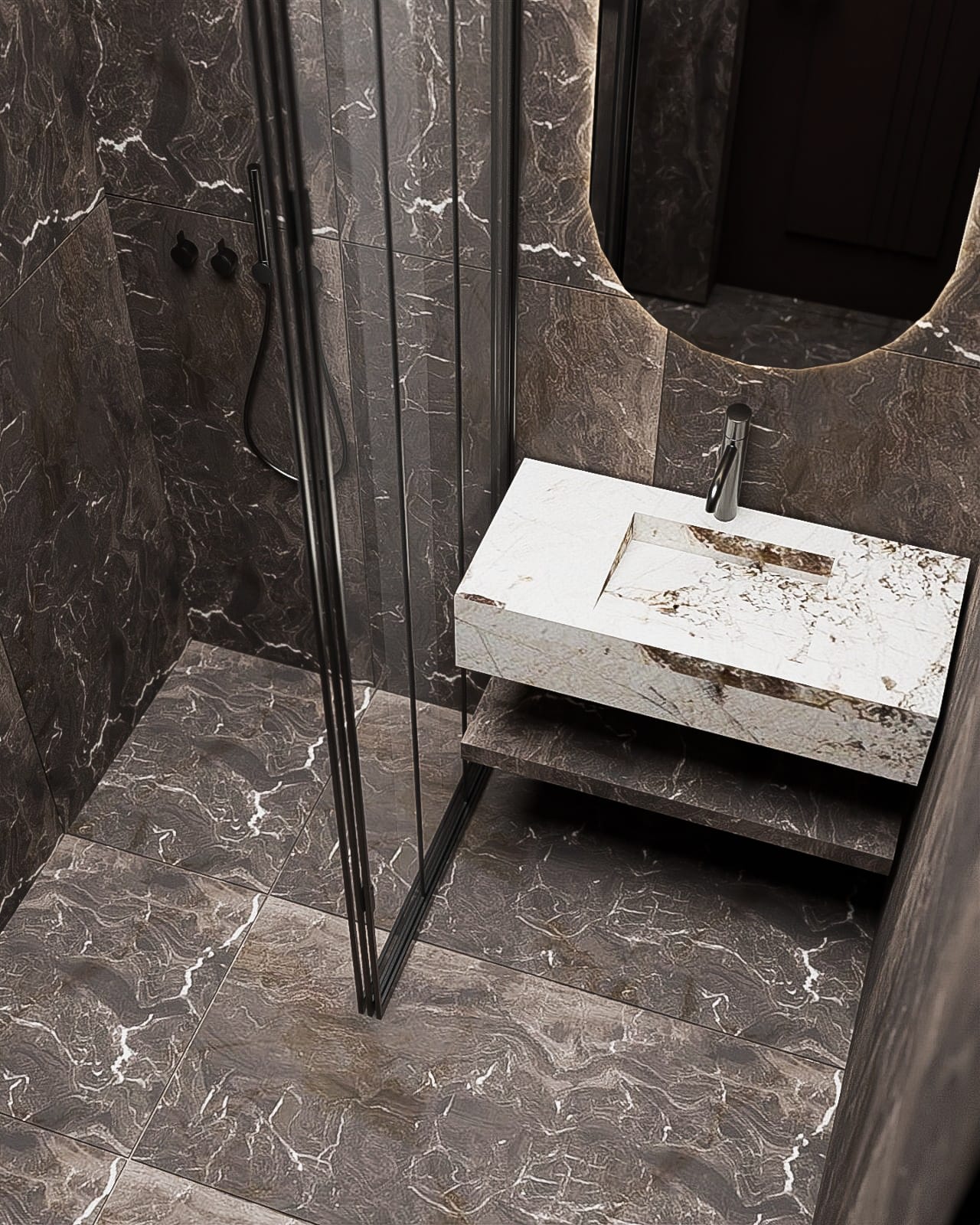 In this section, you will find interior design projects of various bathrooms, showcasing different architectural details. The design of each bathroom is based on the clients' specific requirements, preferences, and ideas.